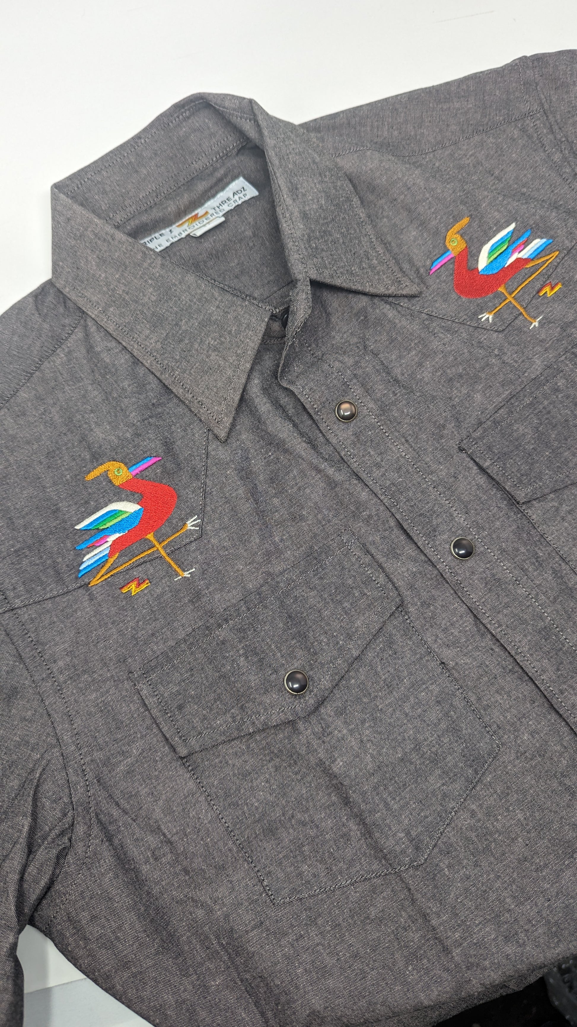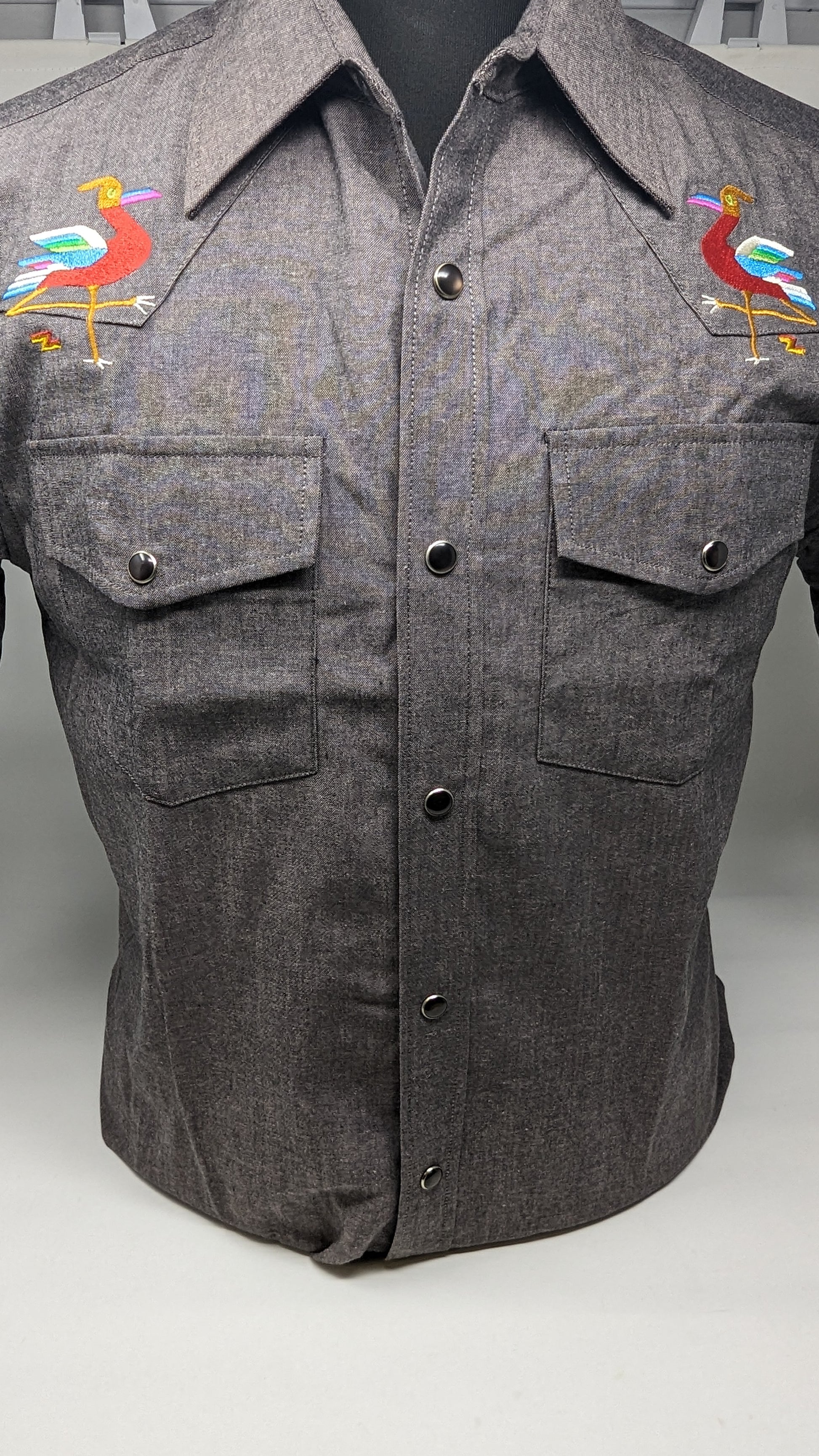 - DETAILS: Western pearl snap. Available in: S, M, L, XL