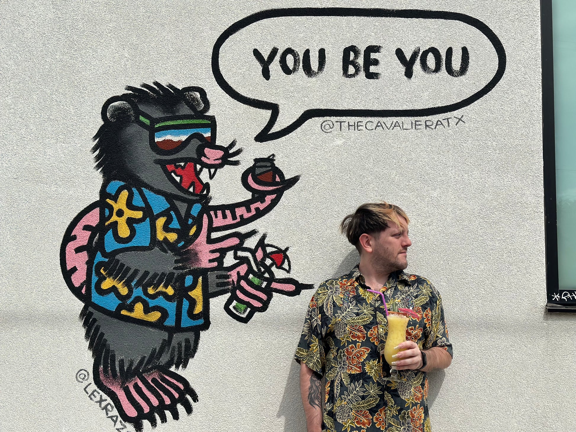 Looking for a shirt that combines individuality with a touch of local charm? This vintage Hawaiian shirt, featuring a possum proudly declaring 'You be you' on the chest, was created in collaboration with The Cavalier ATX. Perfect for those who love a good dive bar and aren't afraid to show off their quirky side. Grab this unique piece and let the world know you're here for a good time, not a long time.